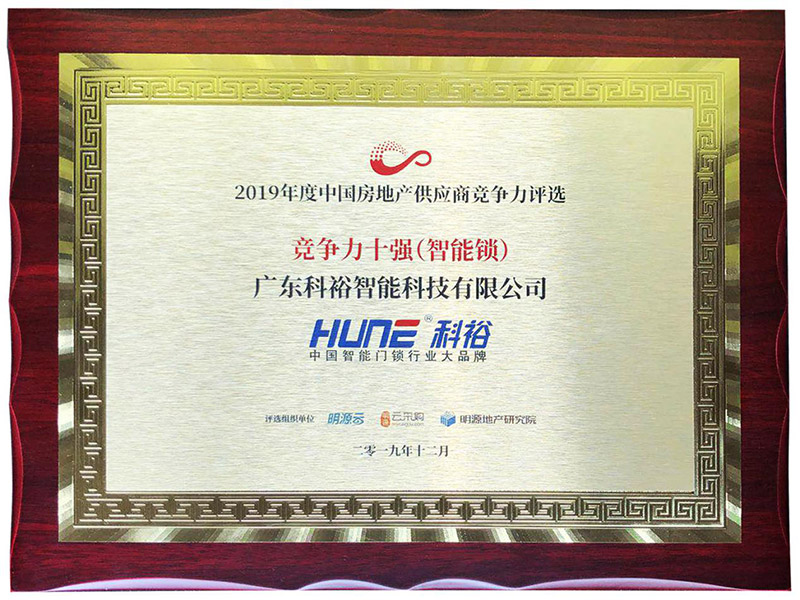 其中,科裕智能門鎖在眾多智能鎖品牌中脫穎而出,實力榮膺“中國房地產行業(yè)供應商競爭力十強”,是行業(yè)內對科裕品牌實力的認可和肯定。