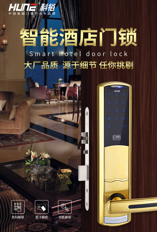 科裕酒店鎖,自建36000平方米大型工業(yè)園,自建產品實驗室,配套完善的生產設備,集產品研發(fā)、生產、銷售、維護于一體,是大型智能門鎖生產商。自1993年成立以來,專注智能鎖行業(yè)29年,依托自身技術優(yōu)勢并順應市場發(fā)展趨勢,始終專注于智慧酒店系統(tǒng)整體解決方案,并重點開發(fā)了酒店聯(lián)網門鎖系統(tǒng)。