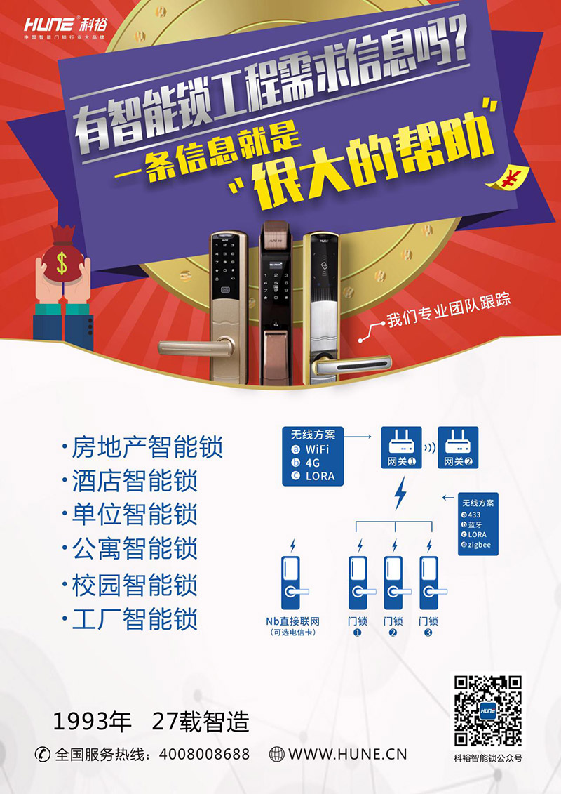 您知道有工程需要智能鎖嗎?您有智能鎖工程需求信息嗎?告訴我們!一條信息就是莫大的幫助,您的寶貴信息,我們將誠(chéng)意感謝!