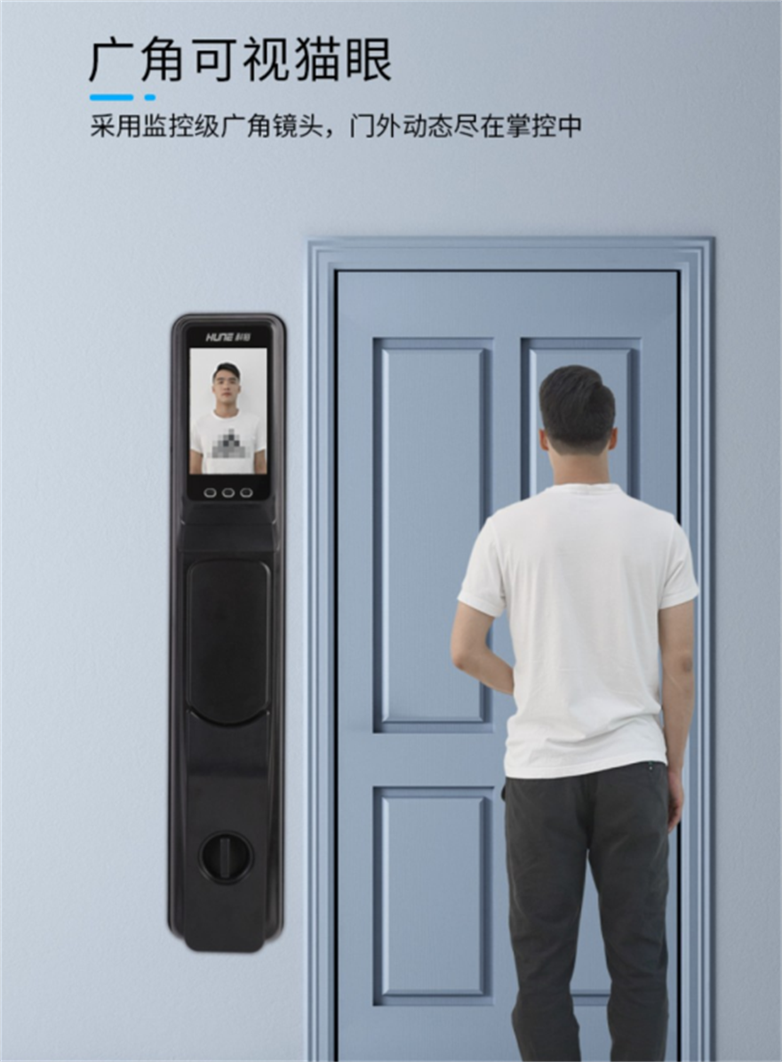 同時,搭載高清攝像頭,其120°的大廣角視野可覆蓋1.2至2米范圍,無需踮腳、彎腰,大人小孩都適用,老人也不用擔心指紋磨損問題,全家人都適用的解鎖方式。