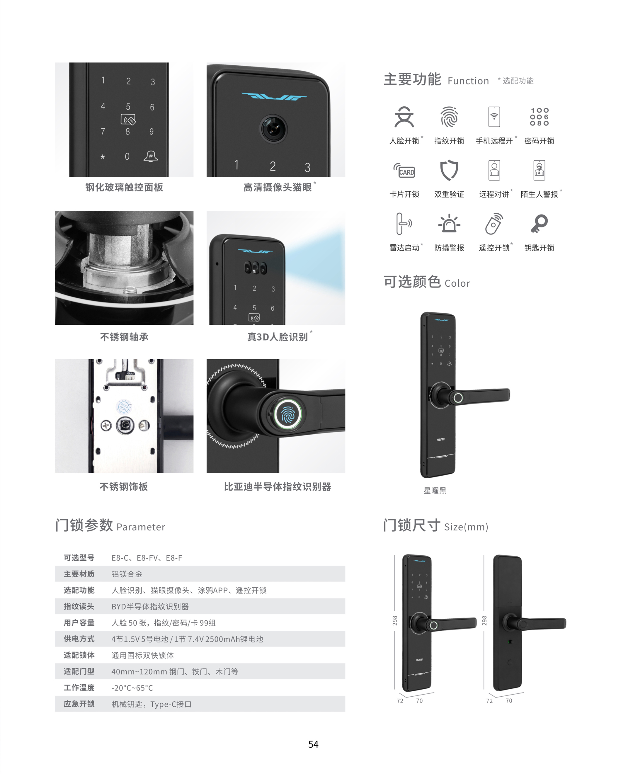 選配功能:人臉識(shí)別、貓眼攝像頭、涂鴉APP、遙控開(kāi)鎖