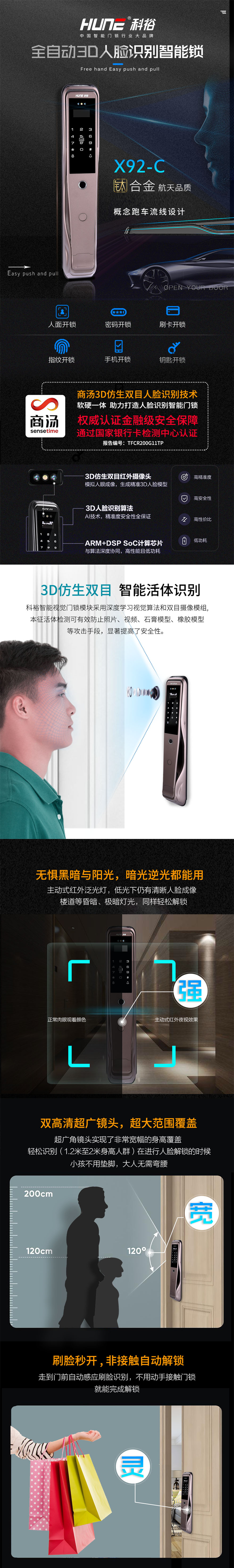 開門方式:指紋,密碼,感應(yīng)卡,機械鑰匙,人臉識別