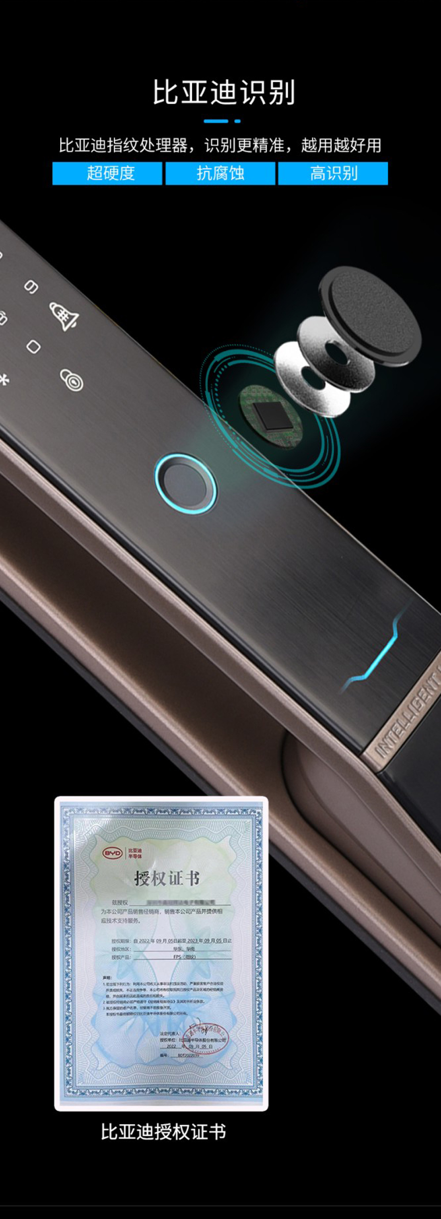 3、國貨之光比亞迪指紋處理器,專 為中國人指紋設計,識別更精準,越用越好用。