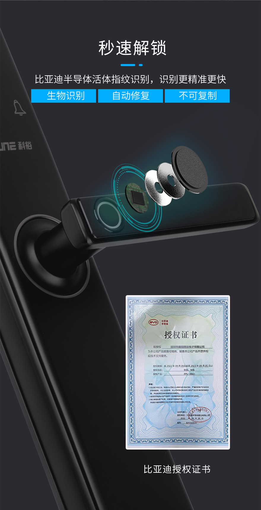 廣東科裕智能科技公司是知名的智能門鎖生產(chǎn)企業(yè),中國(guó)指紋鎖,智能鎖、酒店門鎖等產(chǎn)品擁有良好信譽(yù)口碑
