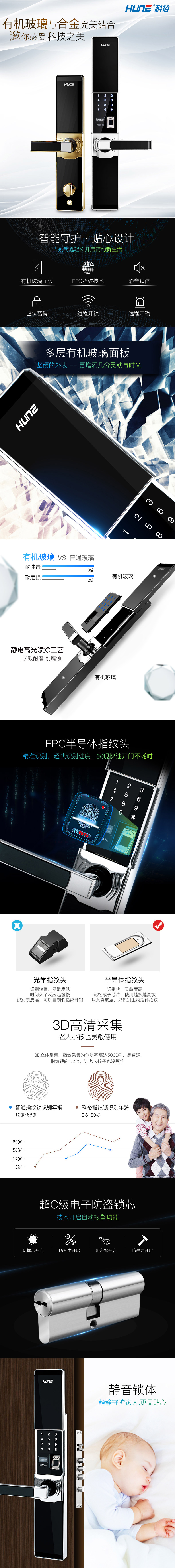 1、外觀簡約時尚,金屬與亞克力的搭配更具格調(diào),鉆石紋理是點睛之筆,更吸引用戶目光,5A鉆化屏,使用更靈敏,雙軸套游離把手有效防松動,萬寶至電機,快速秒開門,大滑蓋設(shè)計防塵防潮更好,多種開鎖方式,可手機遠程操控,科技感十足