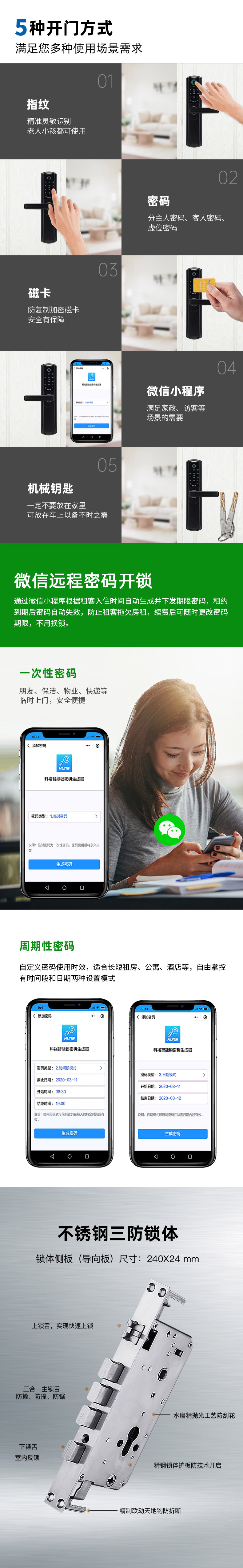 開門方式:指紋,密碼,感應卡,機械鑰匙